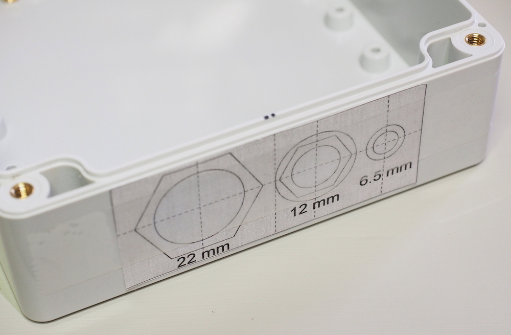 My preference is to take measurements of the enclosure and create a drilling template in a vector drawing program. A drawing helps you observe the maximum dimensions required by the connector and the nut.