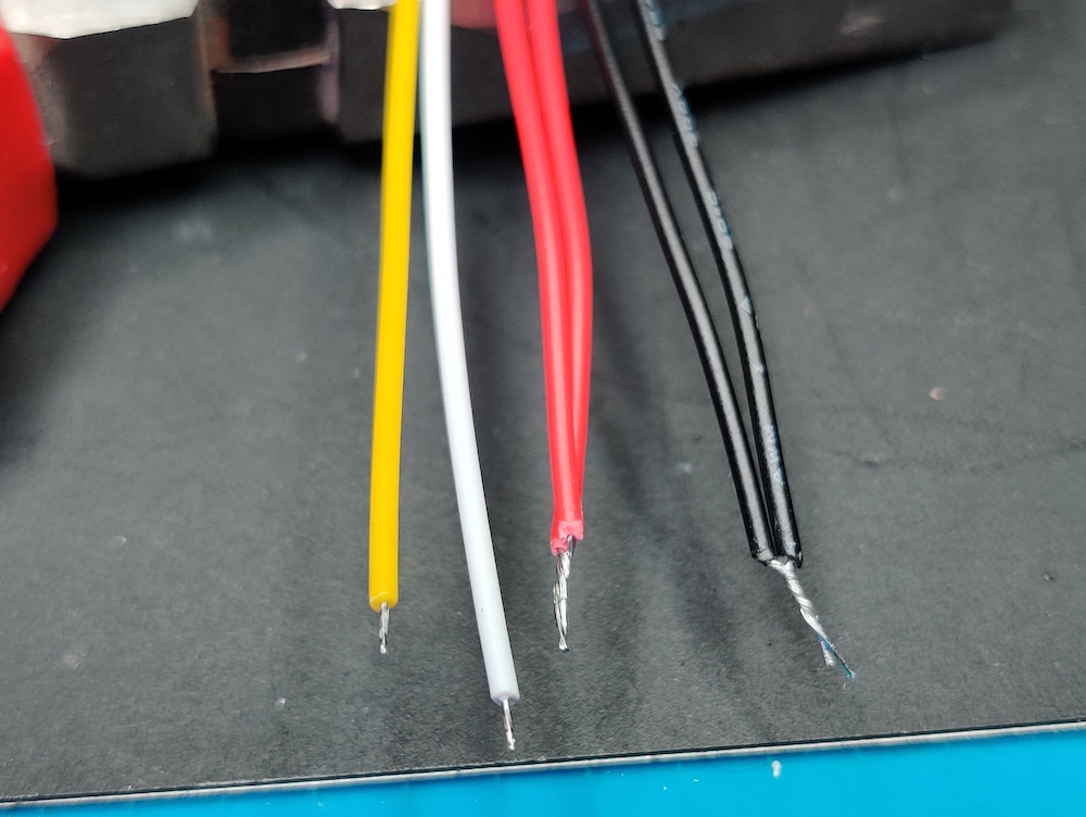 It is recommended to use heat shrink tube to isolate the connector pins and to provide mechanical support to the solder joints. Cut short pieces of the heat shrink tube and slide them on the wires. (Guess who forgot this part _again_ while preparing the photos for this tutorial!)