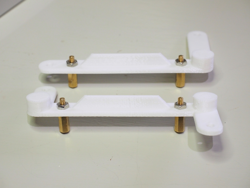 First, we'll attach the short standoffs to the mount adapters with the M2.5 nuts. Try to get them tight.
