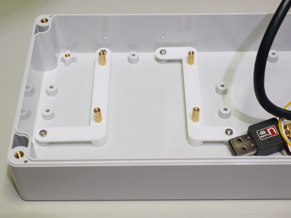 Once the standoffs are in place, the adapters themselves can be mounted to the enclosure with the self-tapping screws.