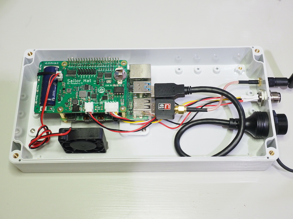 In this tutorial we'll use the plastic enclosure and power the Pi through an NMEA 2000 panel connector. Additionally, a USB type A panel connector is used to provide easier connectivity when needed, and a cooling fan is added to improve heat dissipation. Feel free to modify your own configuration, though.