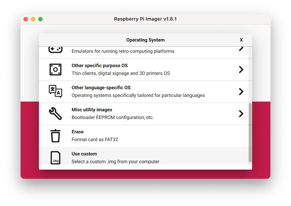 **NOTE:** The Imager is only available for download for macOS, Windows, and Ubuntu Linux. If you are using some other operating system or Linux distribution, you might need to use some other software to flash the card (but at that point, I assume you are well aware of how to do that).