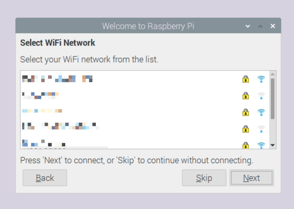If you have plugged in a compatible USB WiFi dongle, you'll need to select a WiFi network to connect to. This is very handy as it will allow you to connect to the internet to download updates and whatnot.
