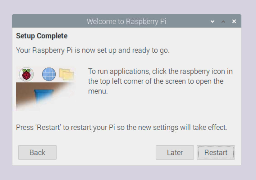 Great! Go through the initial Pi welcome wizard. You'll have to first enter a new password and select the country, language, and other basic settings.