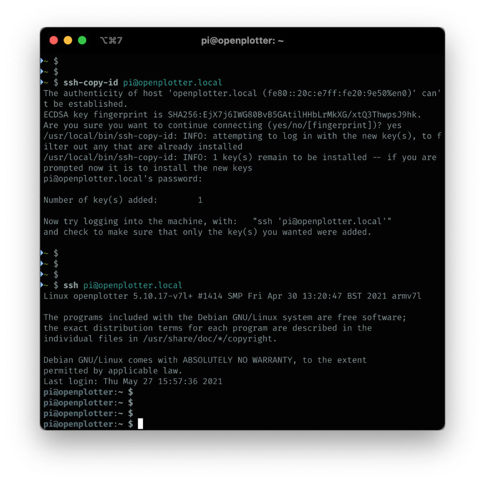 And that's it! Now you can login to the Pi without a password. I recommend to use this method on all systems you're accessing remotely -- it's more secure than using passwords.