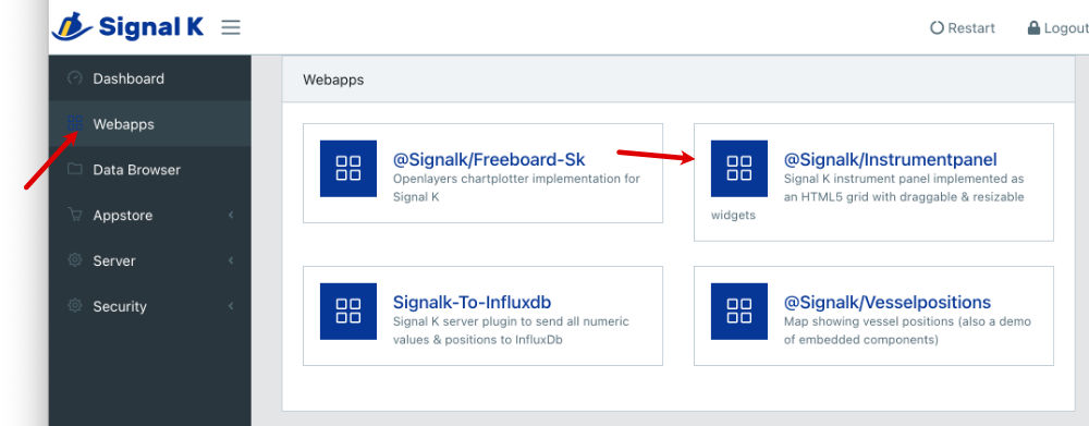 In addition to the standard Instrument Panel, there are a lot of very nice dashboard applications for Signal K. You might want to try [KIP](https://github.com/mxtommy/Kip) (found at the SK server app store) or [Wilhelm SK](https://www.wilhelmsk.com/) (for iOS devices only, available at the App Store).