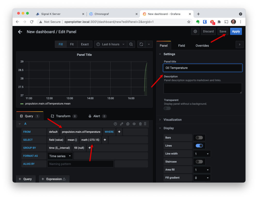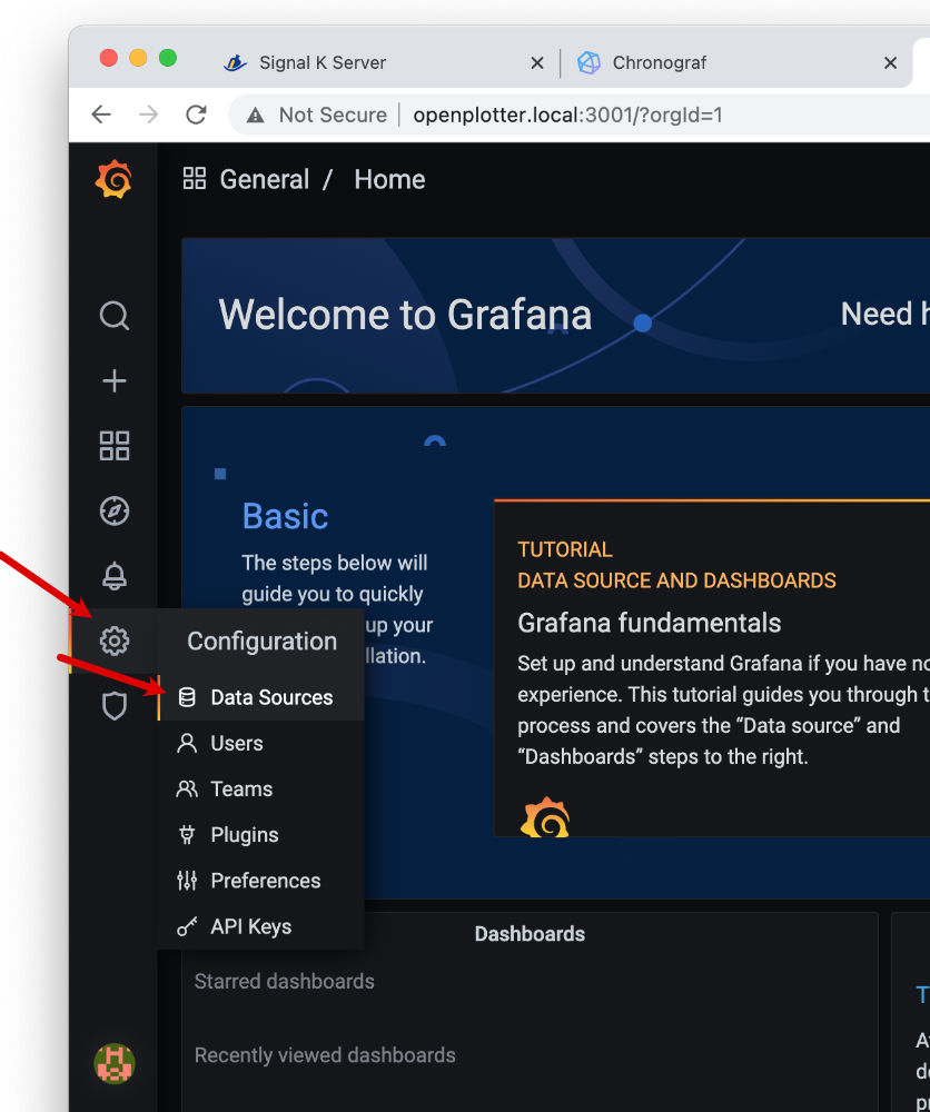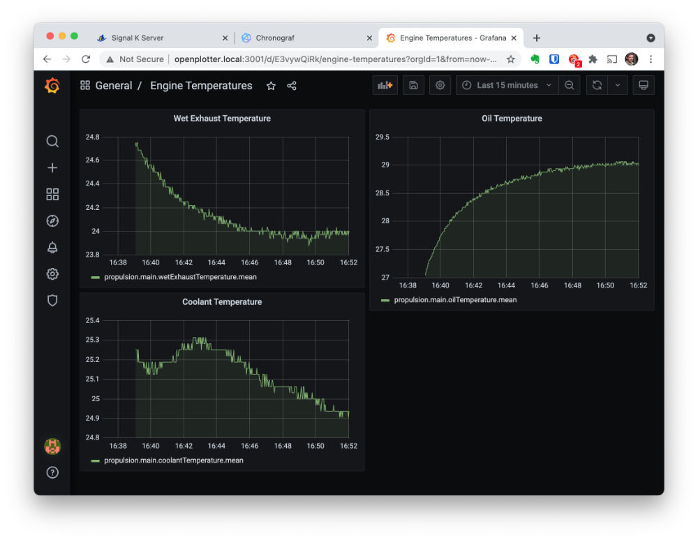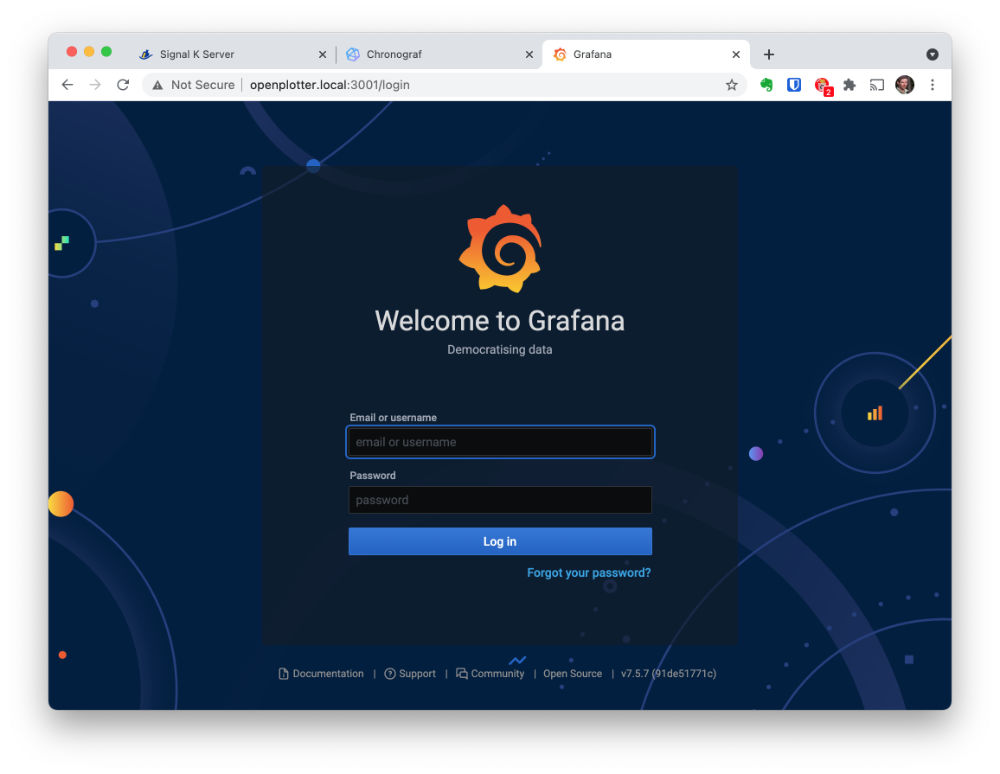 We'll use Grafana to show some fancy graphs. Open Grafana in your browser: [http://openplotter.local:3001](http://openplotter.local:3001).