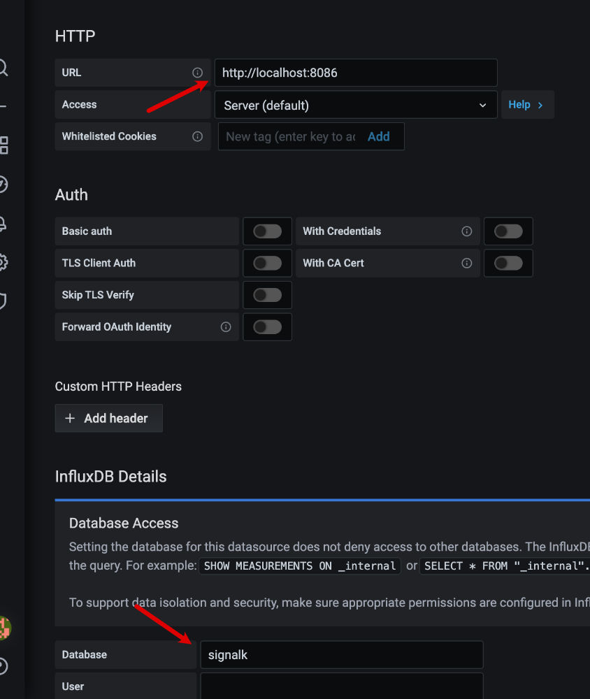 InfluxDB is a time-series database that we'll use for storing the data. Grafana is a visualization toolkit often used for visualizing IT system health, but due to its versatility, can be used for our marine data visualization purposes as well.