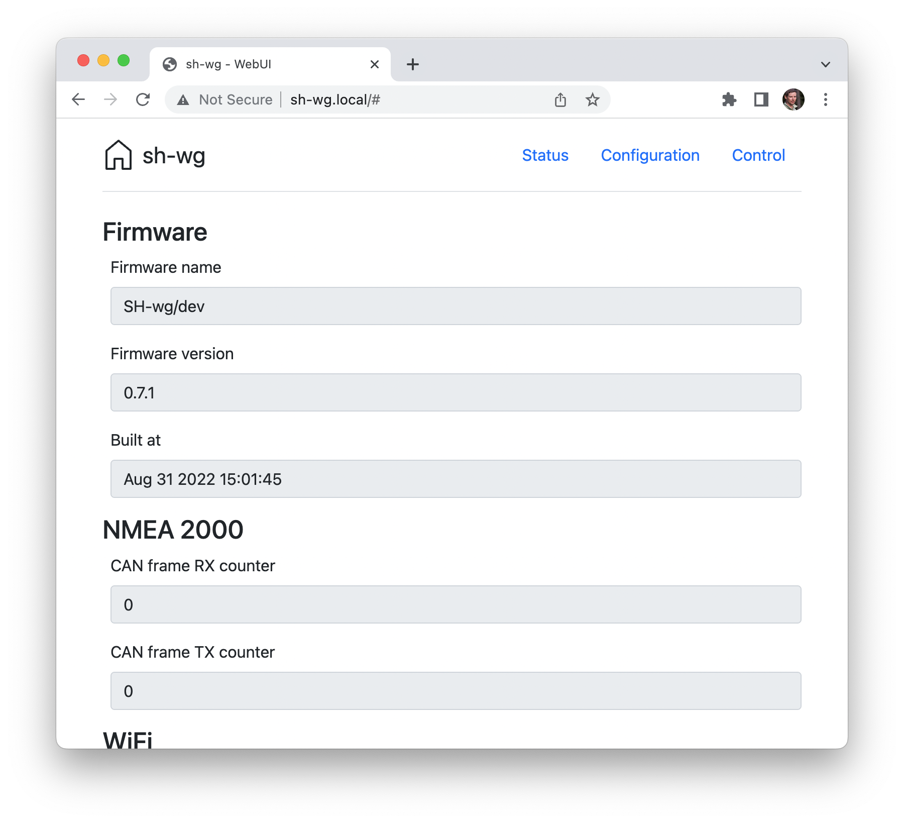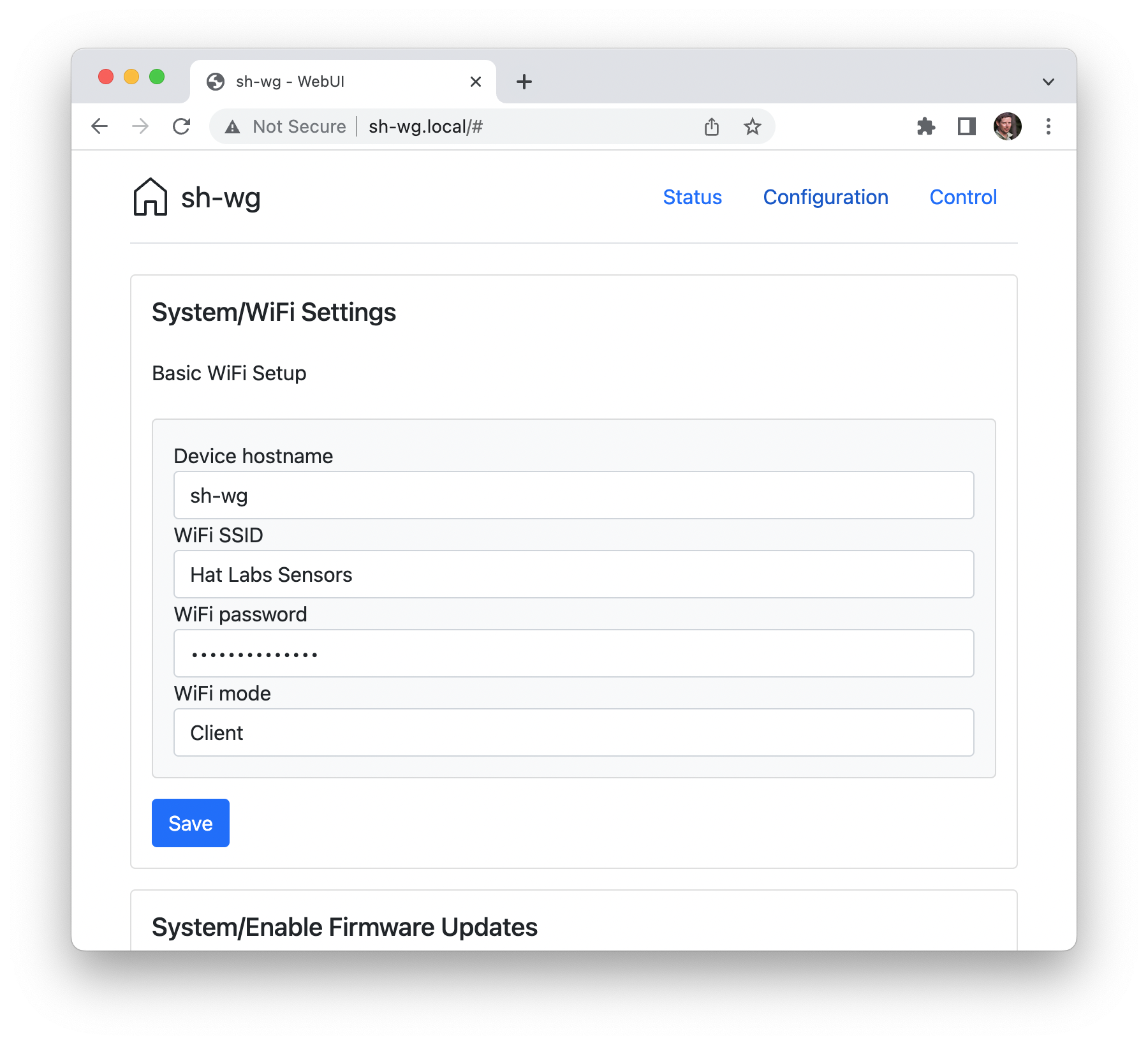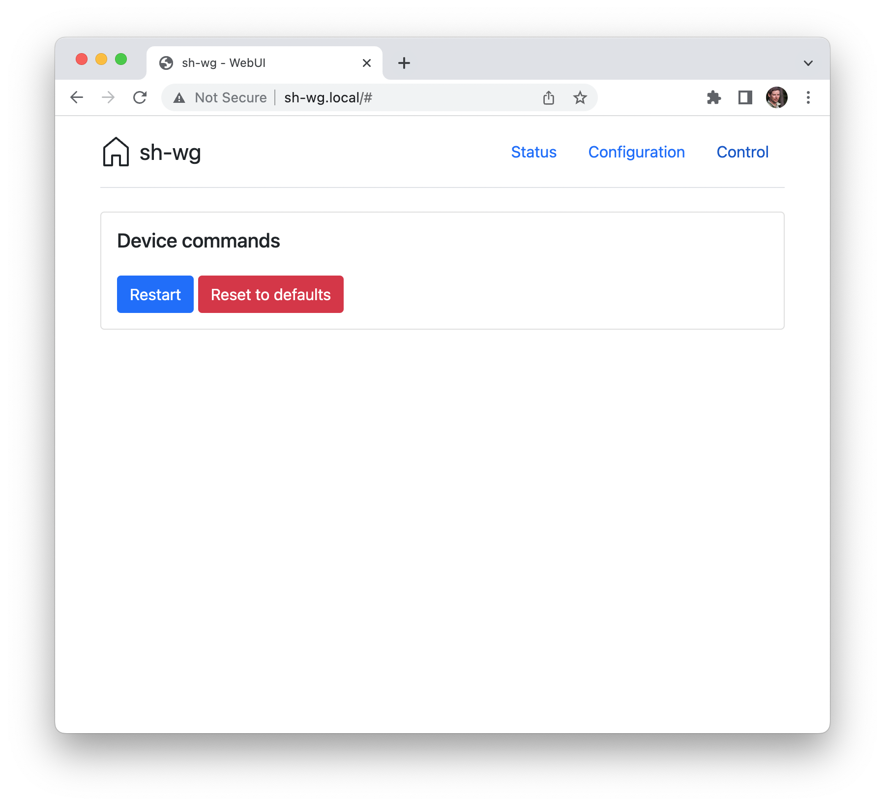 If you are connected to the same network as the device, you can access the web interface by opening a web browser and navigating to http://sh-wg.local/.