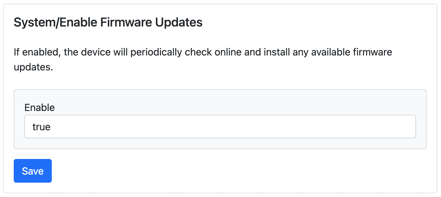 If you would like to disable automatic updates, change the Enable Firmware Updates selection to False.